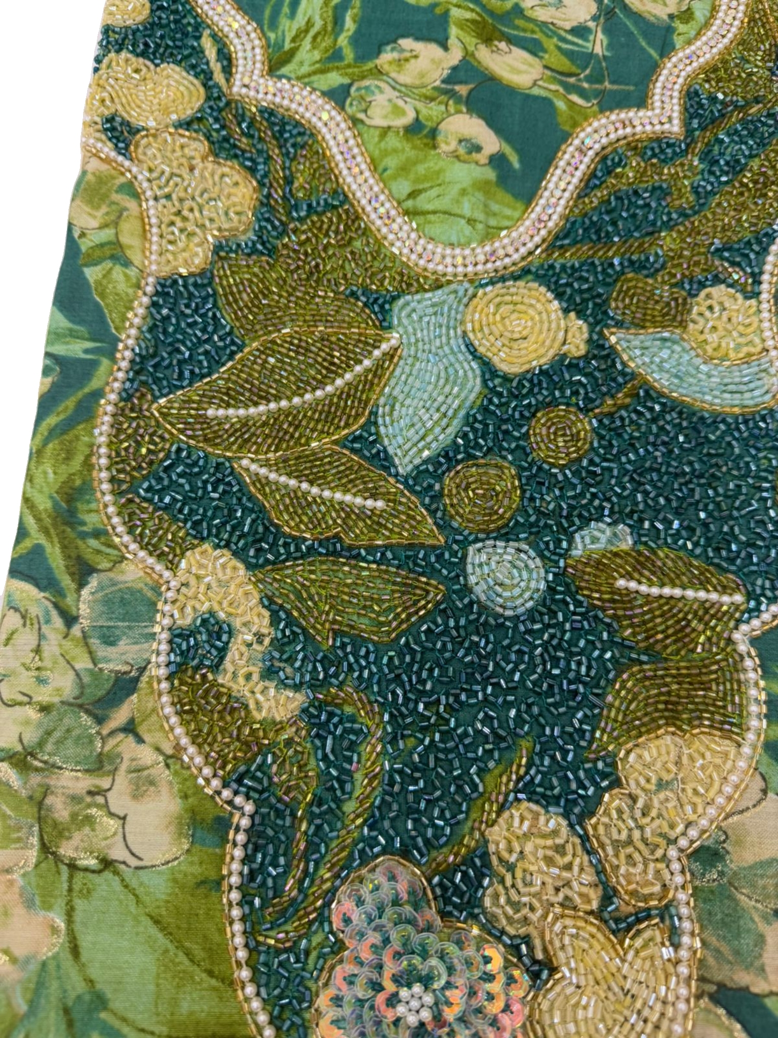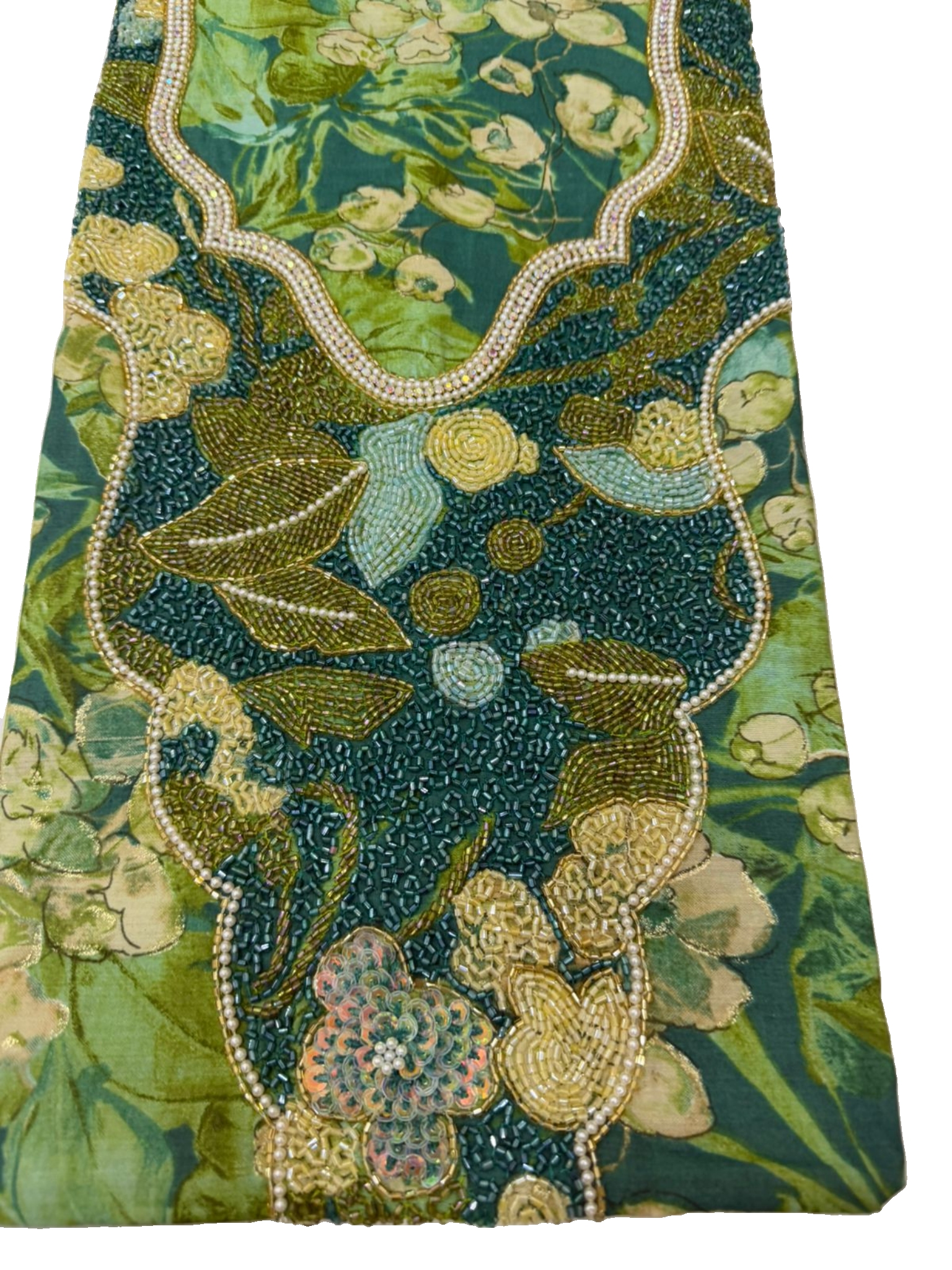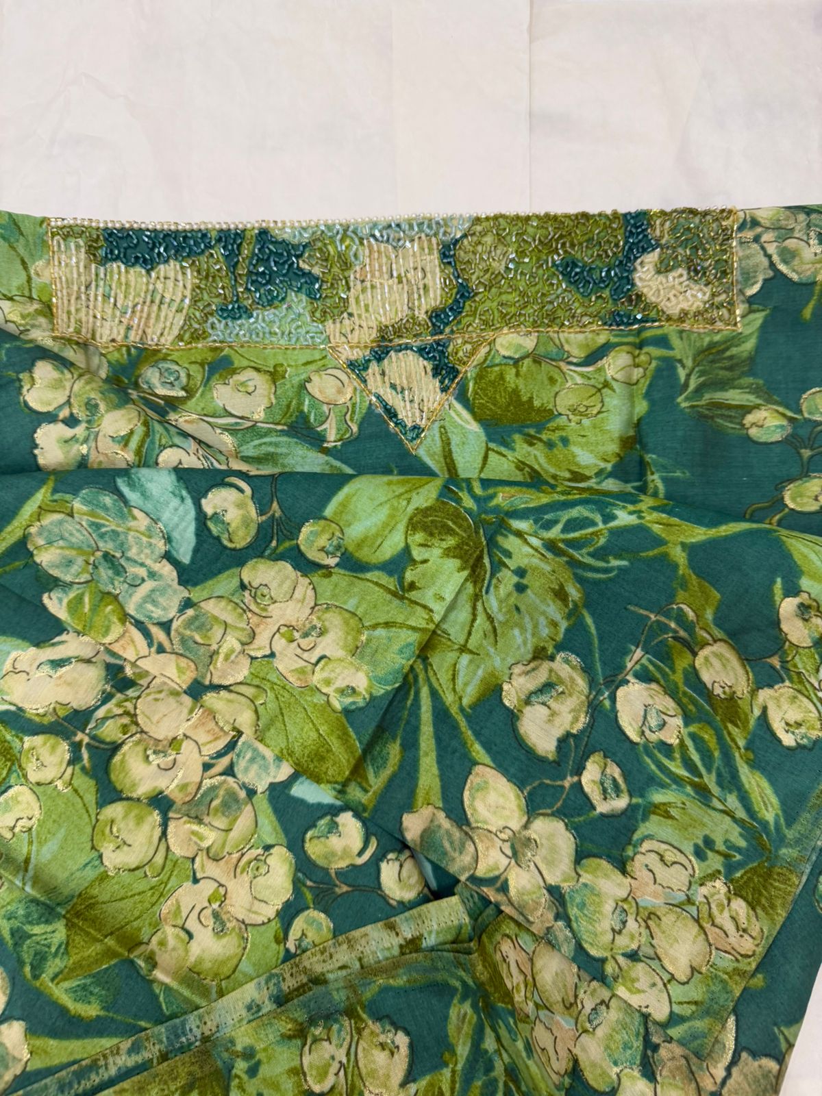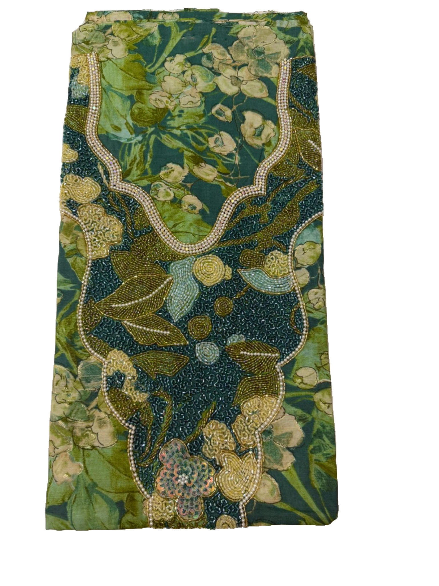 قماش قطن مزراي هندي فاخر، مزين بـ شغل خرز يدوي متقن يضيف لمسة فخامة وأناقة على كل تفصيلة.