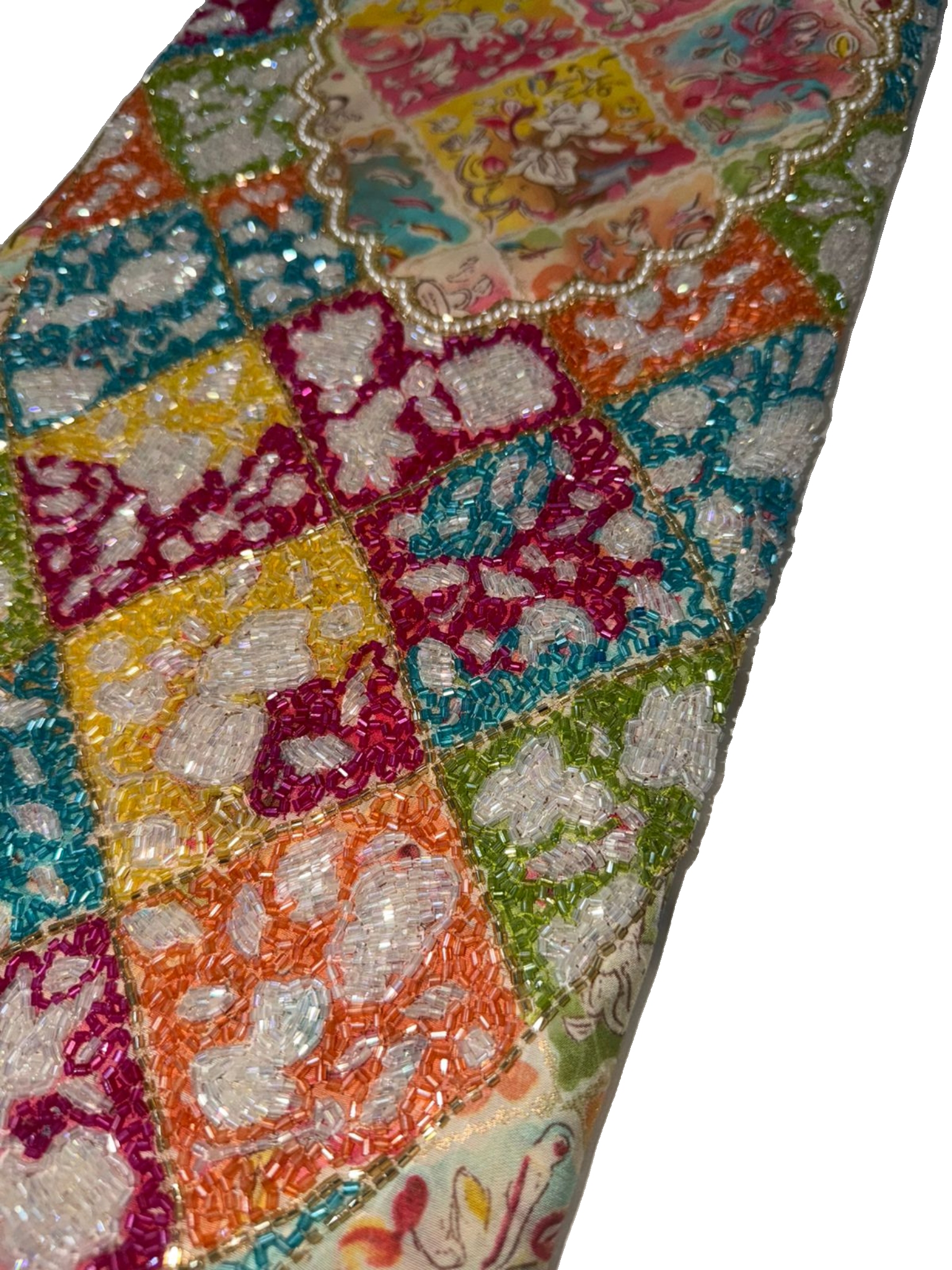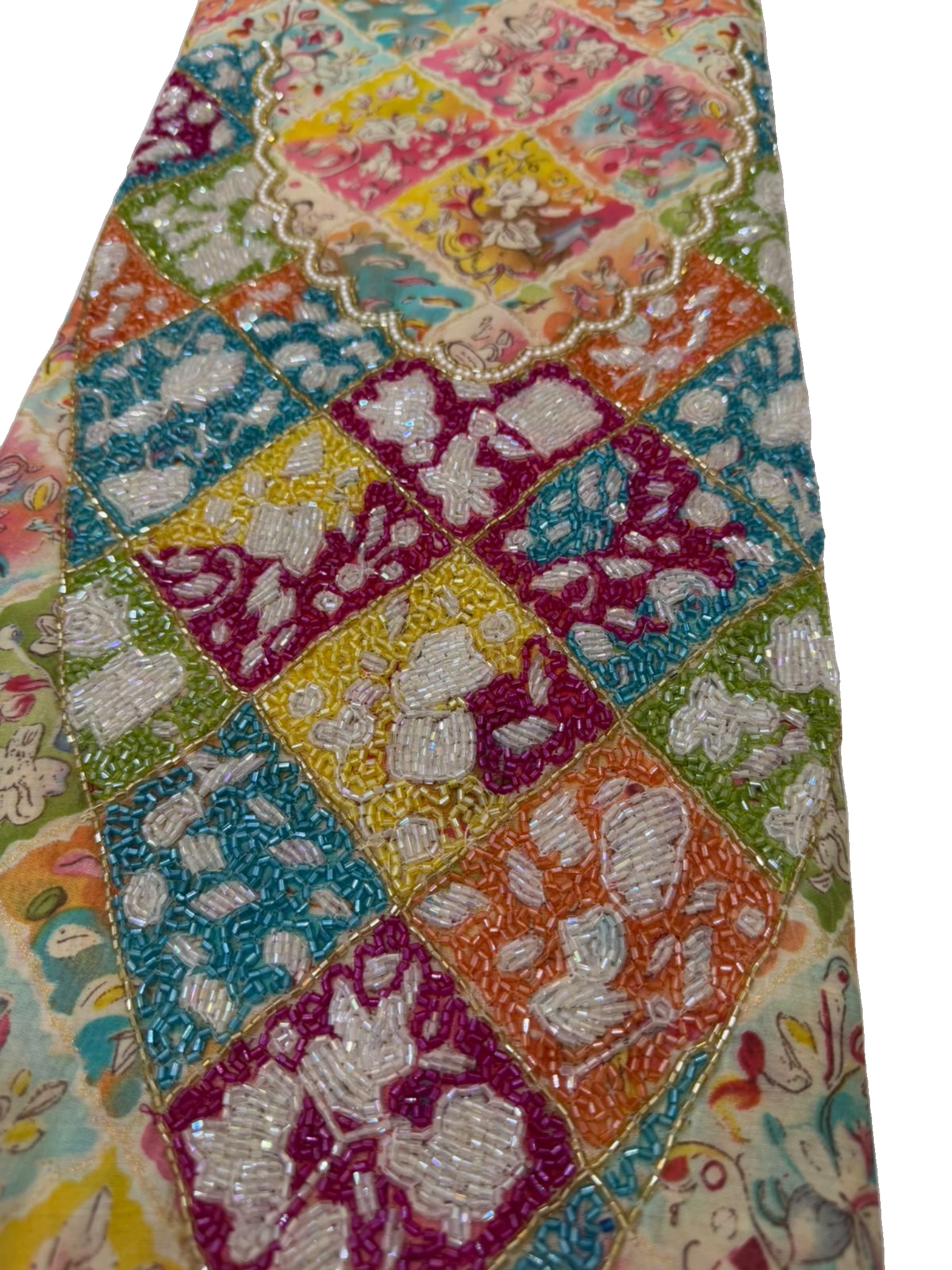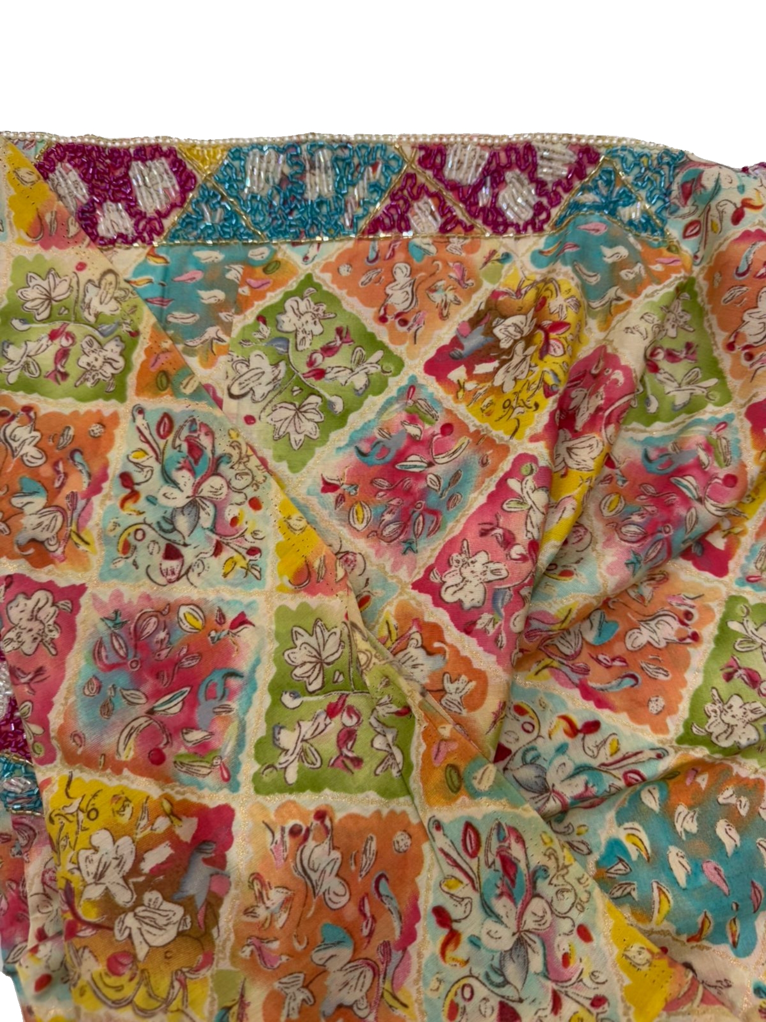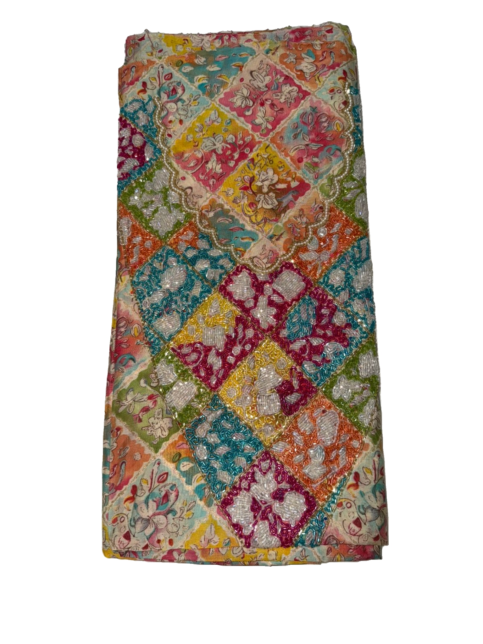 قماش قطن مزراي هندي فاخر، مزين بـ شغل خرز يدوي متقن يضيف لمسة فخامة وأناقة على كل تفصيلة.